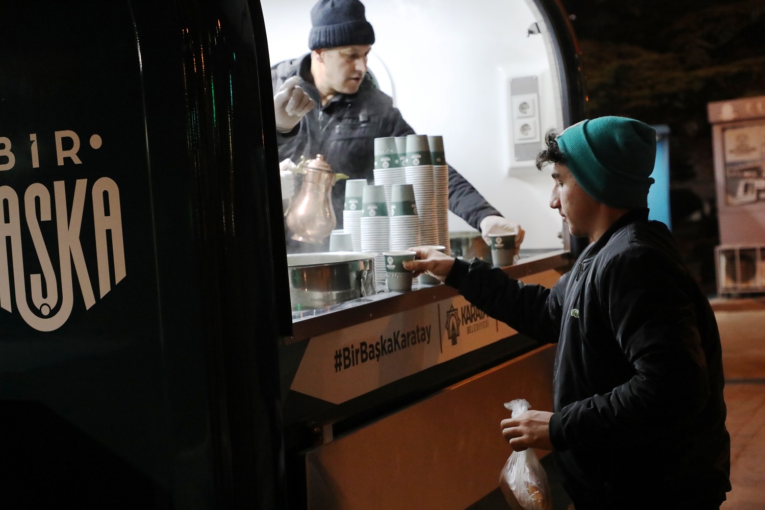 Karatay Belediyesi, soğuk havalarda mobil ikram araçlarıyla sıcak çorba ikram etmeye devam ediyor. Sabahın erken saatlerinde ilçenin işlek noktalarındaki çorba ikramı, işe, hastaneye veya okula gitmek üzere yola çıkan Konyalıların içini ısıtıyor.