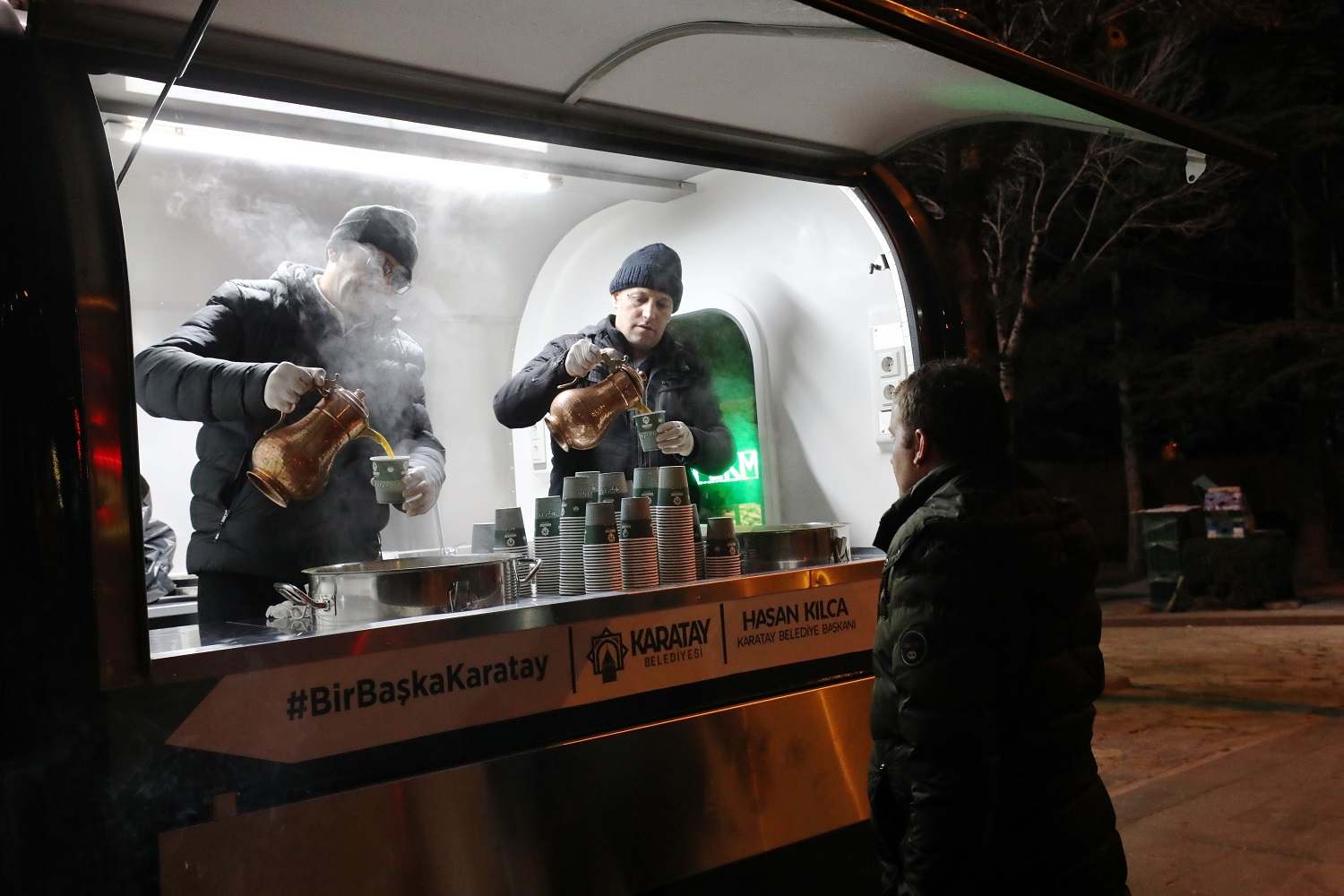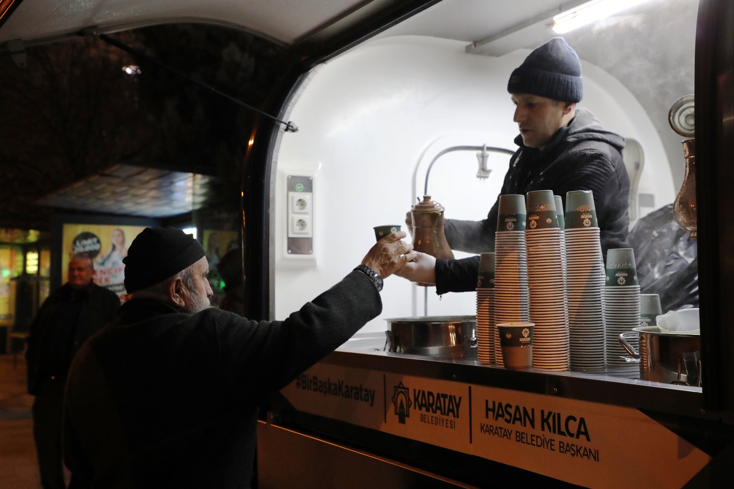 Başkan Hasan Kılca; “Karatay Belediyesi olarak sosyal belediyecilik anlayışını tüm uygulamalarımızda göstermeye çalışıyoruz. Sabahın erken saatlerinde çalışmak, okula veya hastaneye gitmek için yola çıkan hemşehrilerimizin bu soğuk havalarda içlerini ısıtmak ve güne sıcak bir başlangıç yapmalarını sağlamak bizleri de mutlu ediyor. Sosyal belediyecilik anlayışımızın bir parçası olan bu ve daha birçok uygulamalarımızla hem vatandaşlarımızın yanında oluyor hem de onların dualarını alıyoruz. Bu tür projelerle hemşehrilerimizin yanında olmaya devam edeceğiz” şeklinde konuştu. (Yunus Köroğlu)