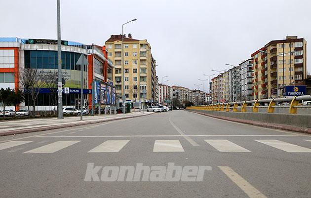 Türkiye genelinde yeni tip koronavirüs (Kovid-19) tedbirleri kapsamında hafta sonu uygulanan sokağa çıkma kısıtlaması nedeniyle, Konya, Karaman, Aksaray ve Afyonkarahisar'da cadde ve meydanlar boş kaldı.