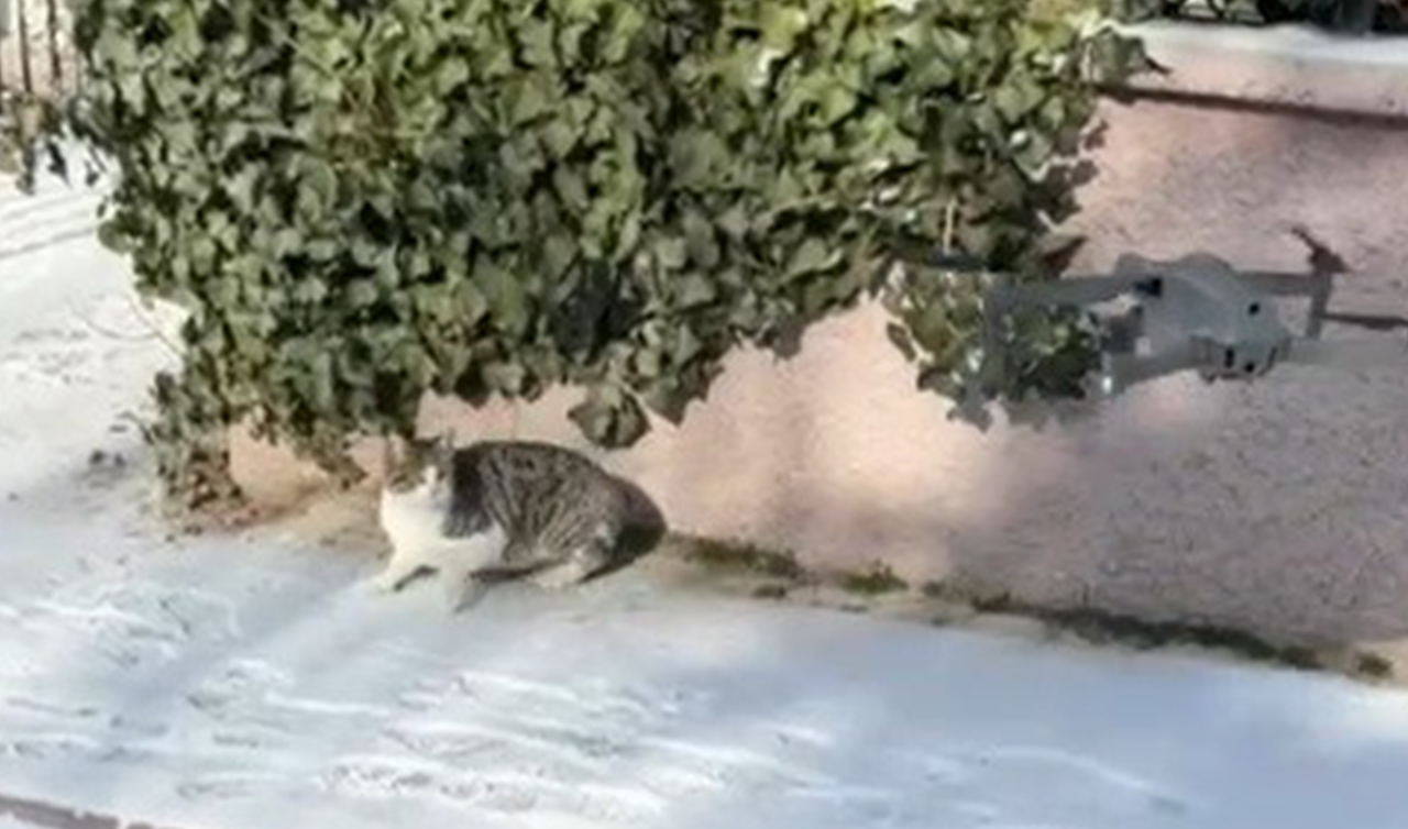 Konya'da bir sokak kedisinin dron ile mücadelesi ilginç ve eğlenceli anlara sahne oldu. Dronu fark eden kedi cihazın çalışması üzerine tedirgin olup kaçmaya başladı. Ancak kedinin merakı korkusuna baskın geldi. İşte gülümseten o anlar....