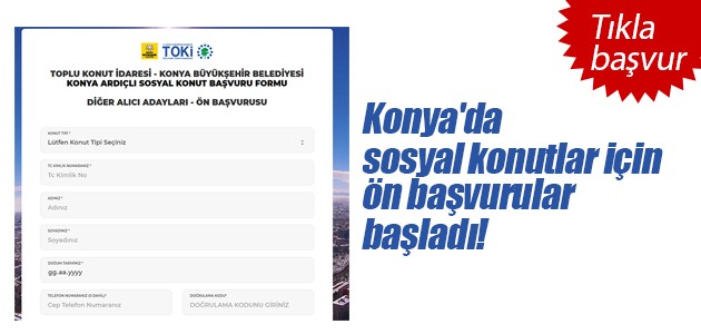 Konya Büyükşehir Belediyesi’nin TOKİ işbirliğiyle yapacağı 3+1 ve 2+1 konutlar için ön başvurular alınmaya başladı.
