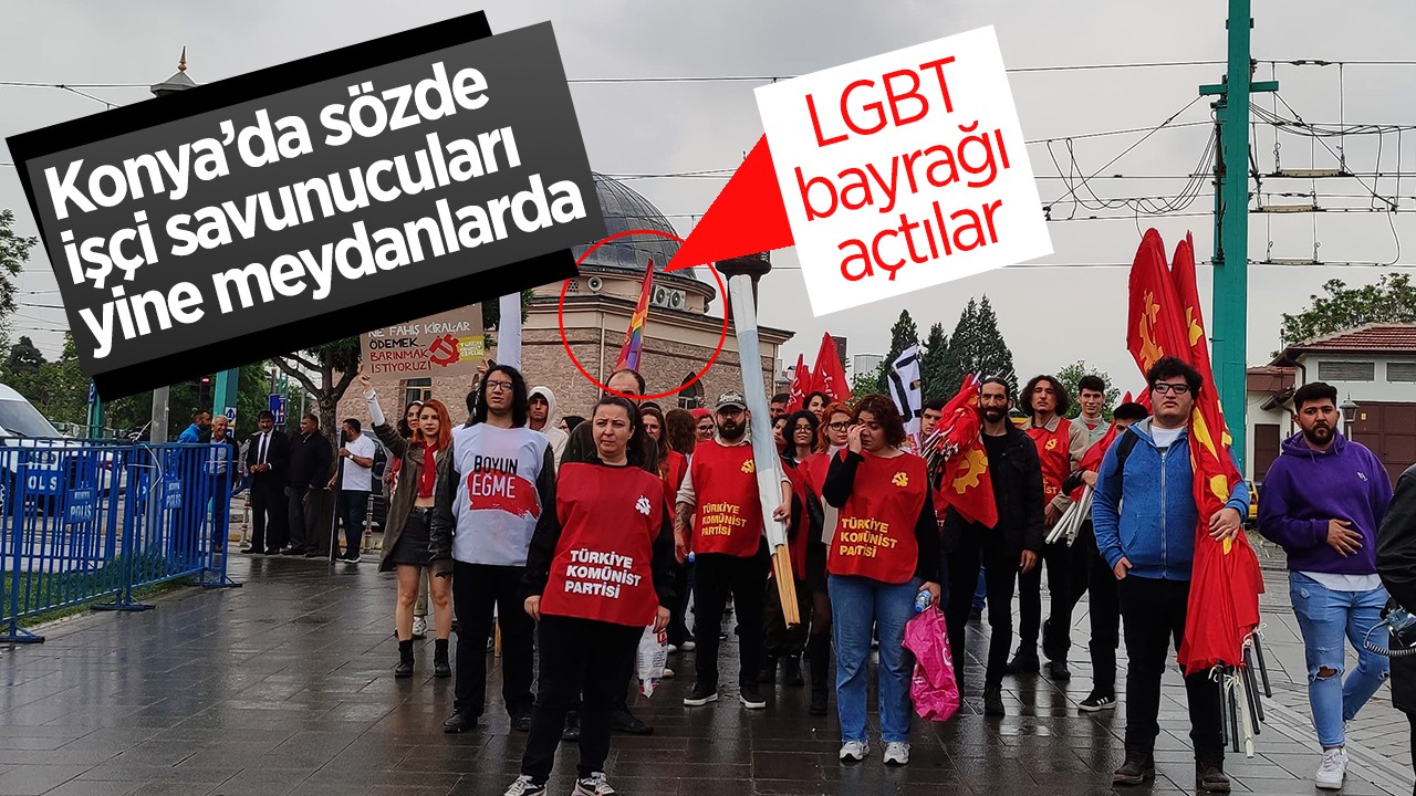 Konya’da 1 Mayıs İşçi ve Emekçiler Bayramı’nda LGBT bayrağı açarak işçinin emeğini savunduklarını sanan bir grup yürüyüşte boy gösterdi. İşçi bayramında yaşanan bu olay ise görenleri kızdırdı.