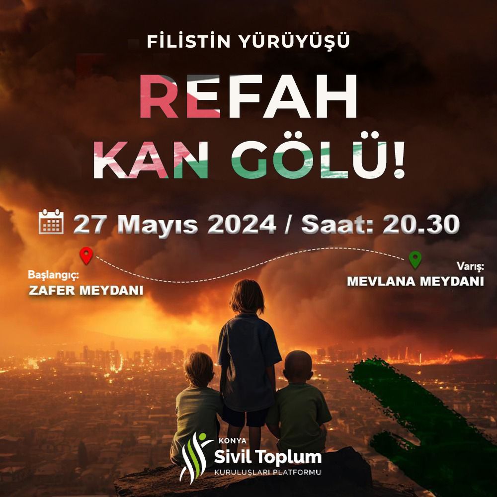 Konya’da Sivil Toplum Kuruluşları Platformu, yaşanan bu vahşete tepkilerini göstermek için bir kez daha Mevlana Meydanı’nda bir araya gelecek. Bugün (27 Mayıs Pazartesi) saat akşam 20.30’da Zafer Meydanı’nda başlayacak yürüyüş, Mevlana Meydanı’nda son bulacak. (Veli Şengül)