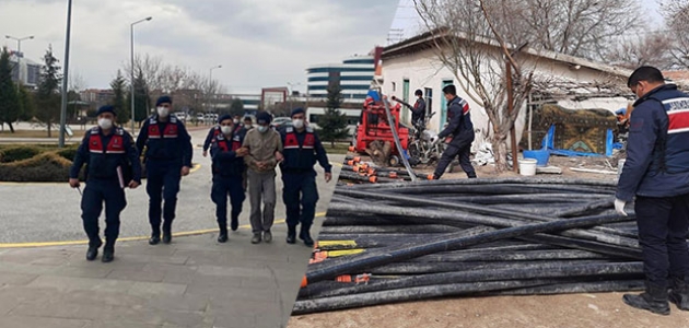 Konya’da jandarma ekipleri tarafından şüphe üzerine durdurulan traktörde tarlalardan çaldıkları sulama borusu ve aparatları ile yakalanan baba ve oğlu gözaltına alındı.