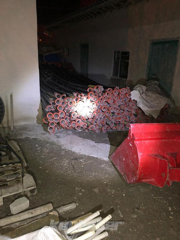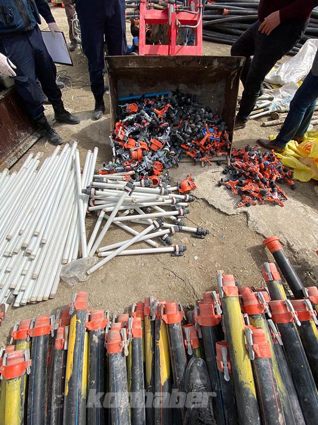 Aynı mahallede ikamet eden şüphelilerin evlerinde arama yapan ekipler, çok sayıda sulama borusu ve malzemesi buldu. Yapılan incelemeler sonucu malzemelerin daha önceden çalındığı tespit edildi.