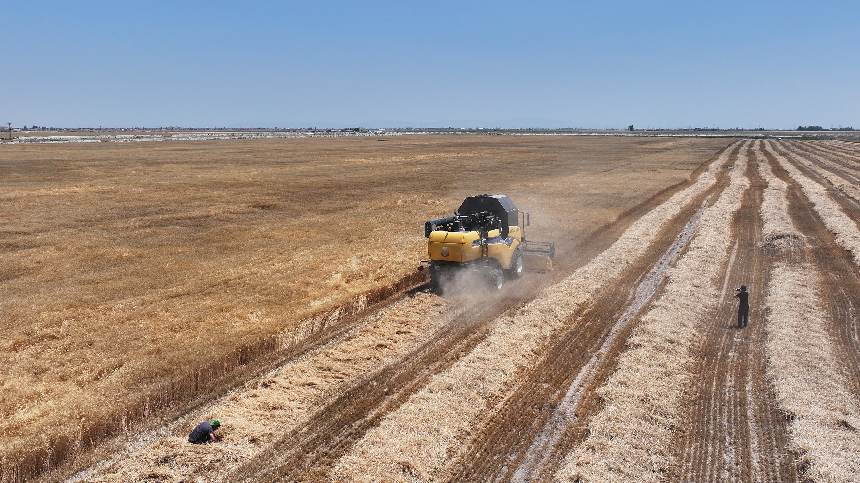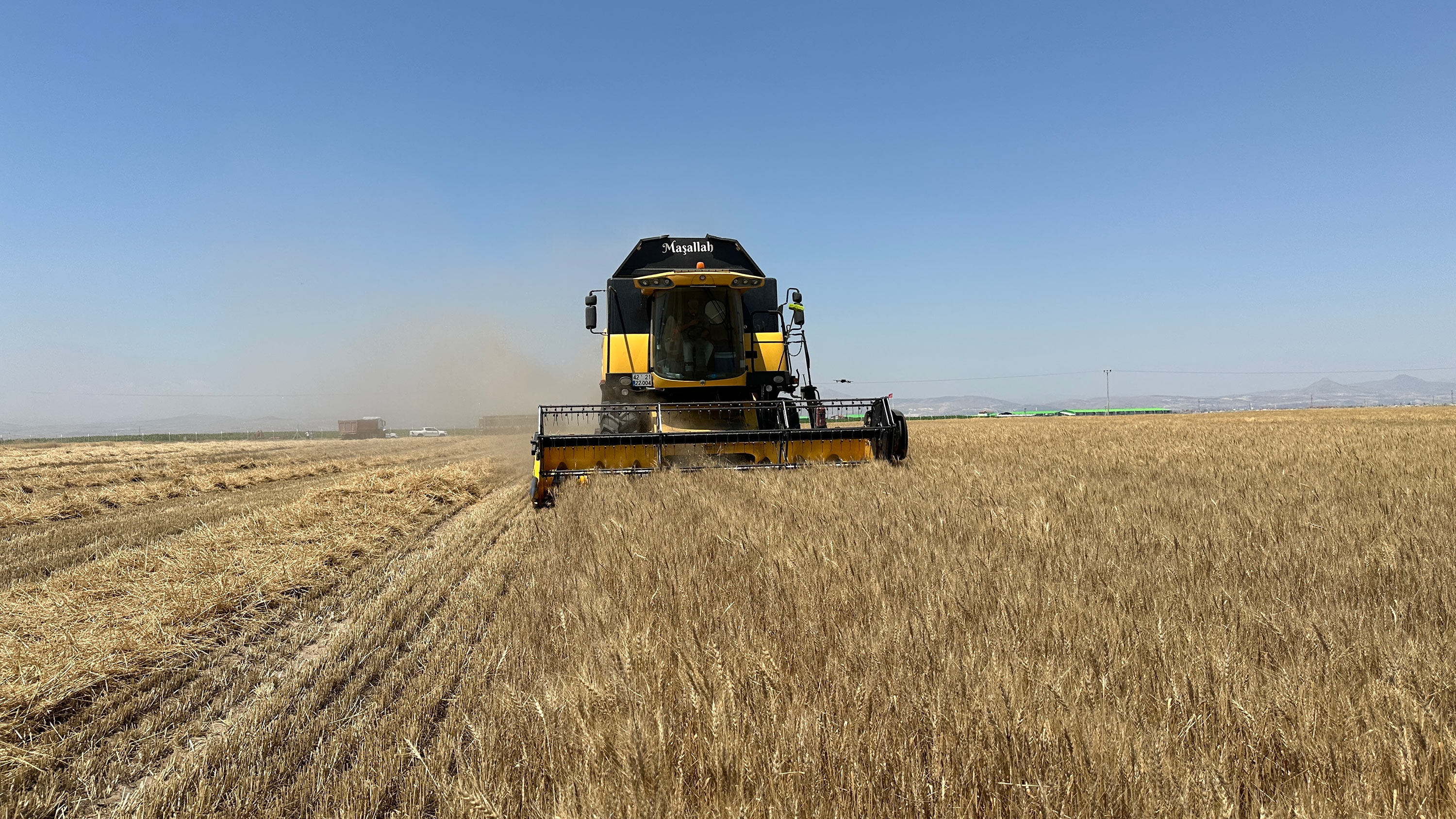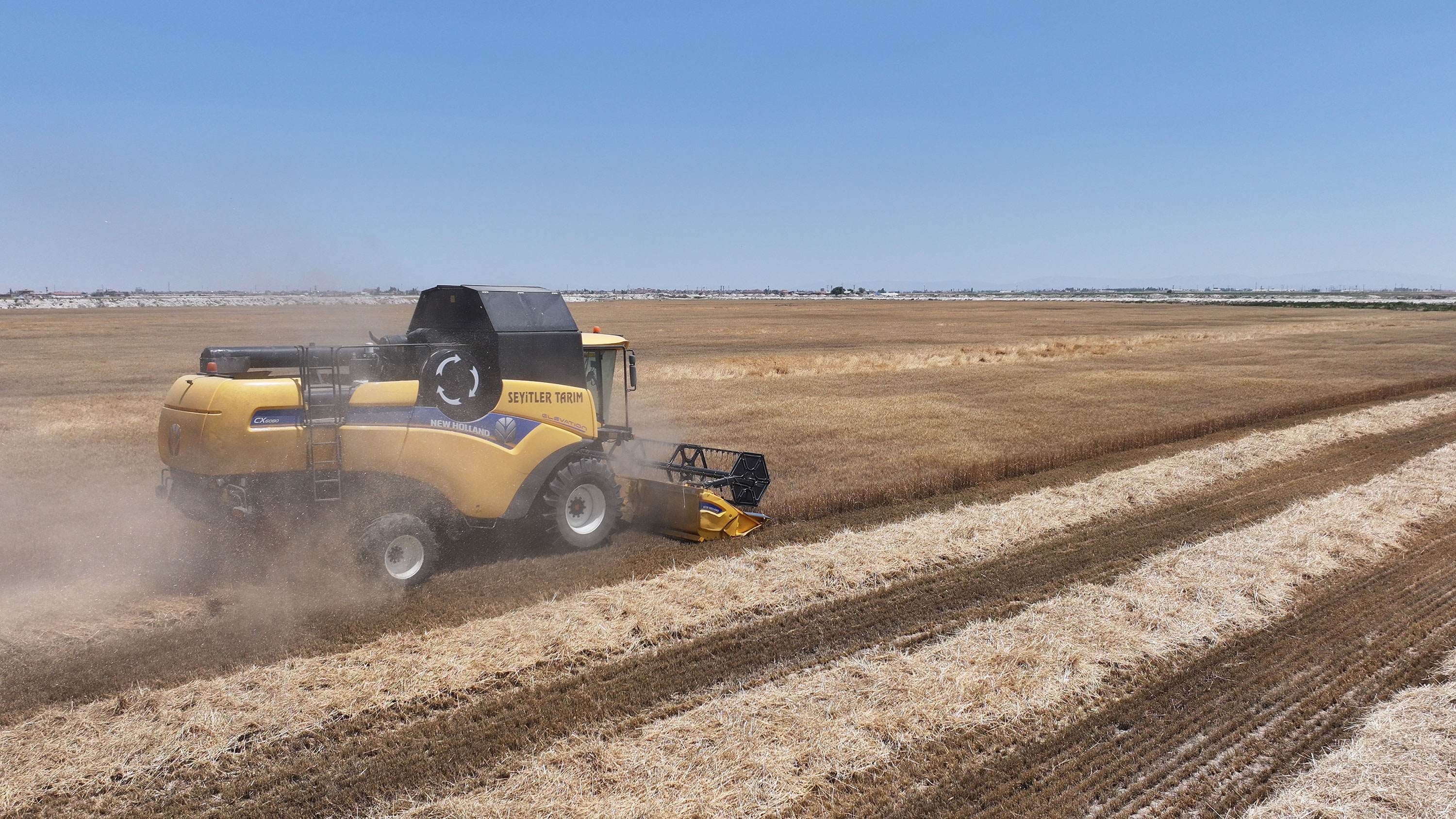 Konya Büyükşehir Belediyesi ve Karatay Belediyesi tarafından üretime kazandırılan Saraçoğlu Mahallesi’ndeki 14 milyon metrekarelik Tarımsal Üretim ve Ar-Ge Kampüsü’nde susuz tarım modeliyle ekilen buğdayın hasadı yapıldı.