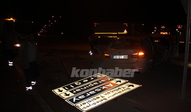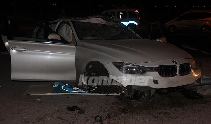 Konya’da direksiyon hâkimiyetini kaybeden sürücü virajı alamayıp takla attı. Metrelerce sürüklenen otomobil yön levhasına çarparak durabildi. Hurdaya dönen otomobilde 1 ağır 3 kişi yaralandı.