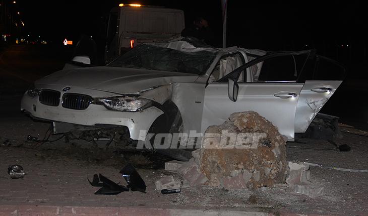 Kaza, gece saat 04.30 sıralarında Konya - Ereğli yolu Okyar Caddesi kavşağında meydana geldi. İddiaya göre; 33 ET 388 plakalı otomobilin sürücüsü Esat B., virajı alamayarak kaldırıma çarptı.