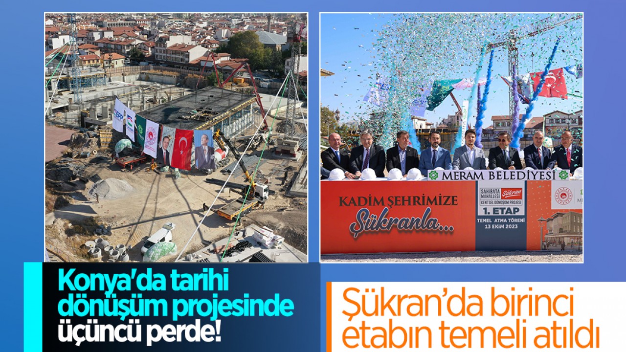2 milyar TL’nin üzerindeki devasa bütçesiyle Meram tarihinin ve Konya’nın en büyük dönüşüm projelerinden biri olan Sahibata Mahallesi Şükran Kentsel Dönüşüm Projesi’nde üçüncü perde de aralandı. Bütçesi ile imar yoğunluğu ve yapı stoğunun azaltılması sebebiyle Türkiye’nin de sayılı projelerinden biri olan projenin birinci etabının da temeli törenle atıldı.