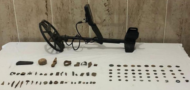 Belirlenen adrese operasyon düzenleyen ekipler, ahıra gizlenmiş Bizans, Roma ve Osmanlı dönemlerine ait 43 bakır, 3 bronz ve 3 gümüş sikke, üçer bakır, bronz ve gümüş yüzük ile balta ucu, terazi dirhemi, 44 çeşitli obje ile kaçak kazıda kullanılan dedektör ele geçirdi.
