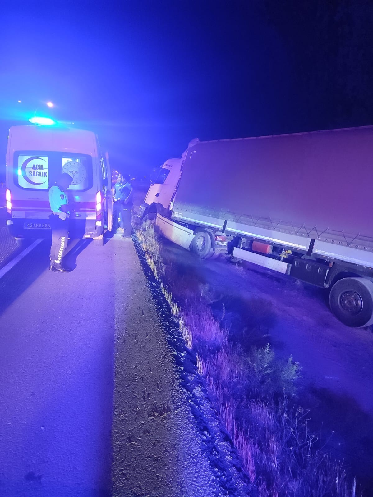 Konya'nın Karapınar ilçesinde şarampole düşüp yön tabelasına çarpan tır sürücüsü yaralandı. Yaralı sürücü ambulansla Karapınar Devlet Hastanesine kaldırılarak tedavi altına alındı.