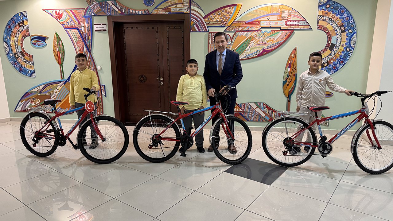 Konya'da tiyatro ekibiyle yaşadıkları diyalog sosyal medyada ilgi gören ortaokul öğrencilerine bisiklet hediye edildi.