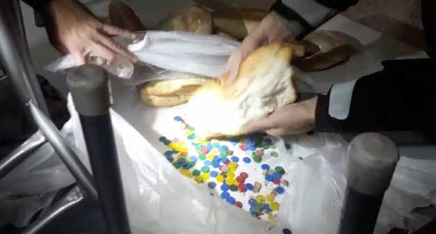Ekmek içerisinde gizlenmiş halde tombala pulu da ele geçirildi.