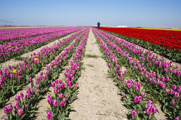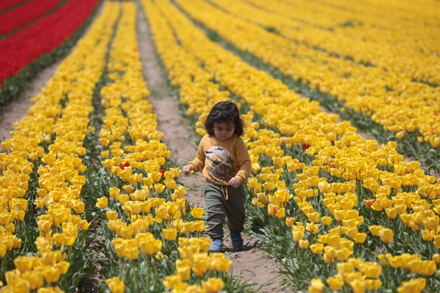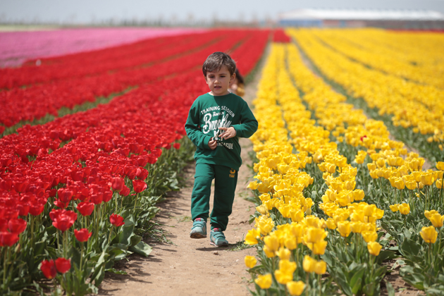 Özellikle fotoğraf tutkunlarının büyük ilgi gösterdiği, "topraktaki gökkuşağı" olarak nitelendirilen lale tarlasında fotoğrafçılar, görsel şölende en iyi kareyi yakalayabilmek için birbirleriyle yarışıyor.