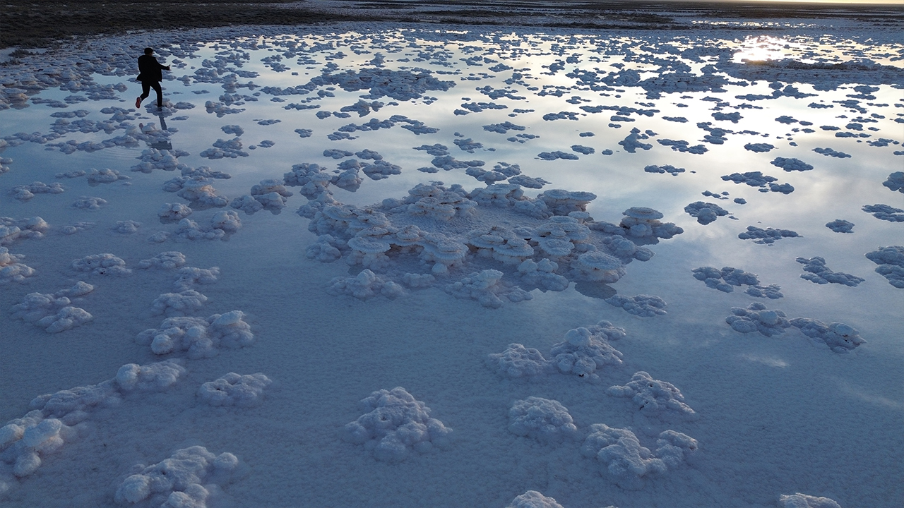 Tuz Gölü'nde oluşan kütleler, bölgeye gelenlerin dikkatini çekiyor.