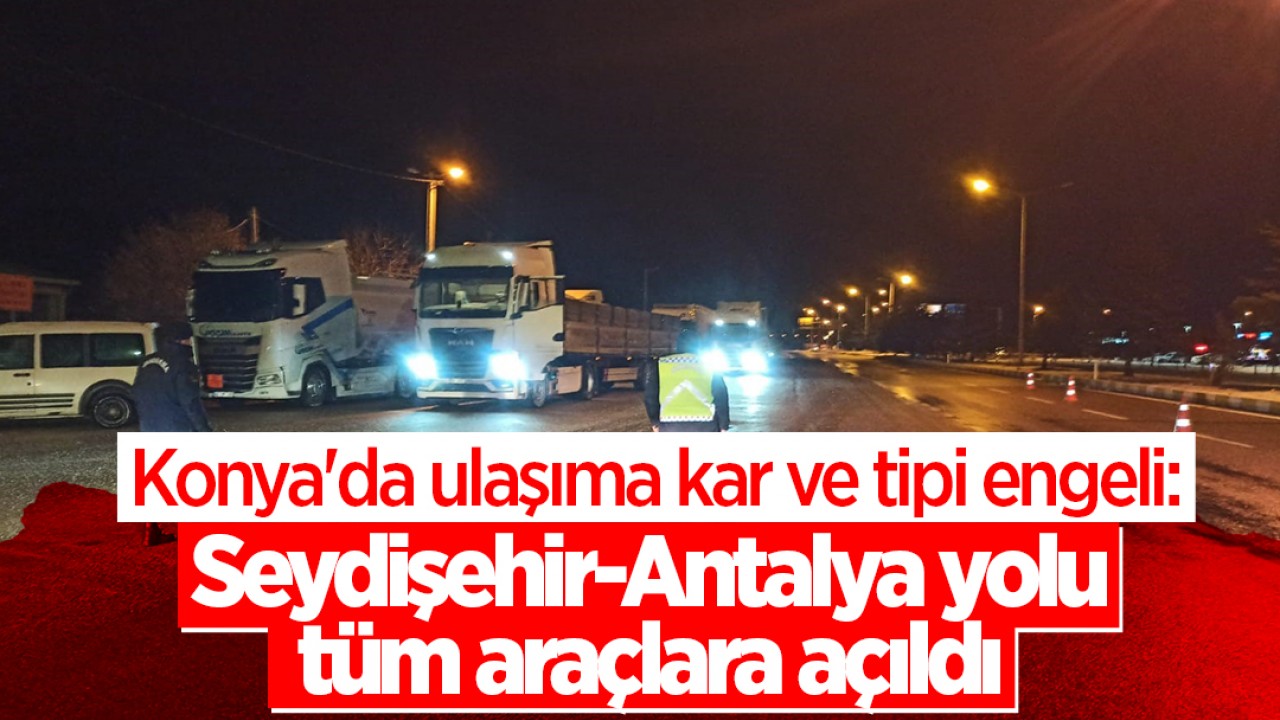 Seydişehir-Antalya kara yolu, yoğun kar yağışı ve tipi nedeniyle tır ve çekici trafiğine kapatılmıştı. Yapılan çalışmaların ardından yol yeniden trafiğe açıldı.