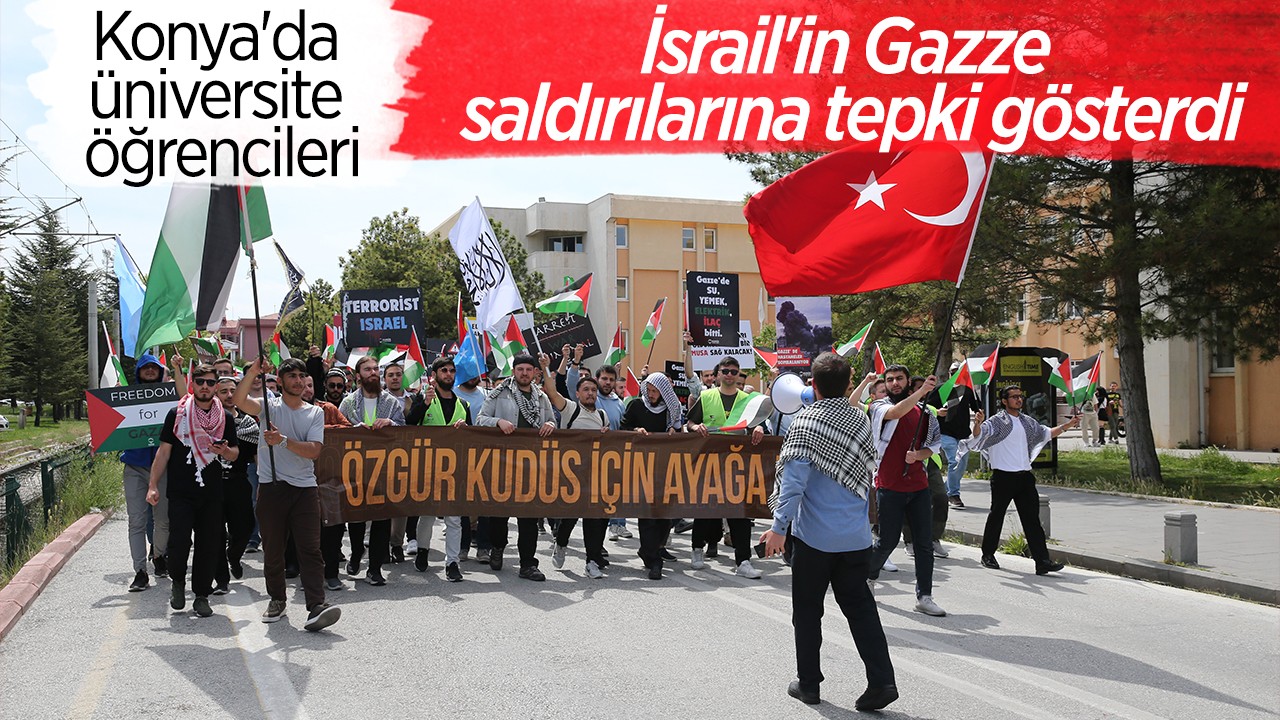 Konya'da üniversite öğrencileri ve akademisyenler, İsrail'in Gazze'ye yönelik saldırılarını protesto etti.