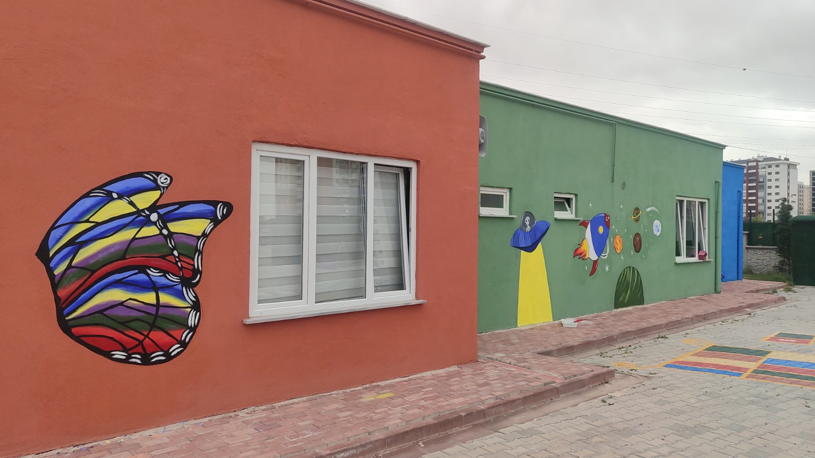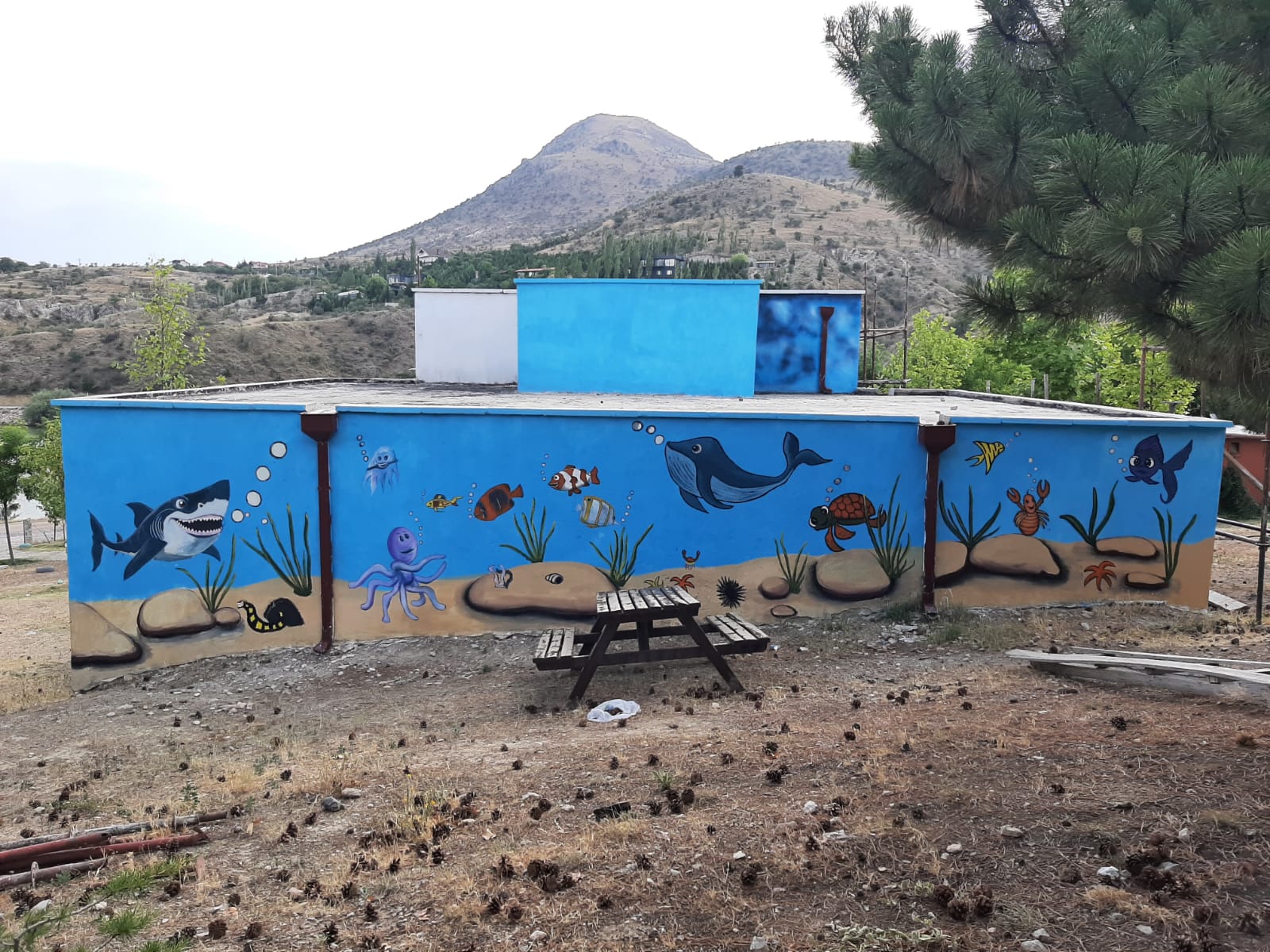 Talep doğrultusunda çalışma yaptıklarına değinen Küçüköner, "İlkokul, ortaokul, yemekhane, spor salonu hatta tabiat mektepleri gibi çeşitli mekanlarda dış ve iç duvarları resimle süslüyoruz. Bu hem çocuklar için hatıra hem de estetik açıdan değerli katkı oluyor." dedi.