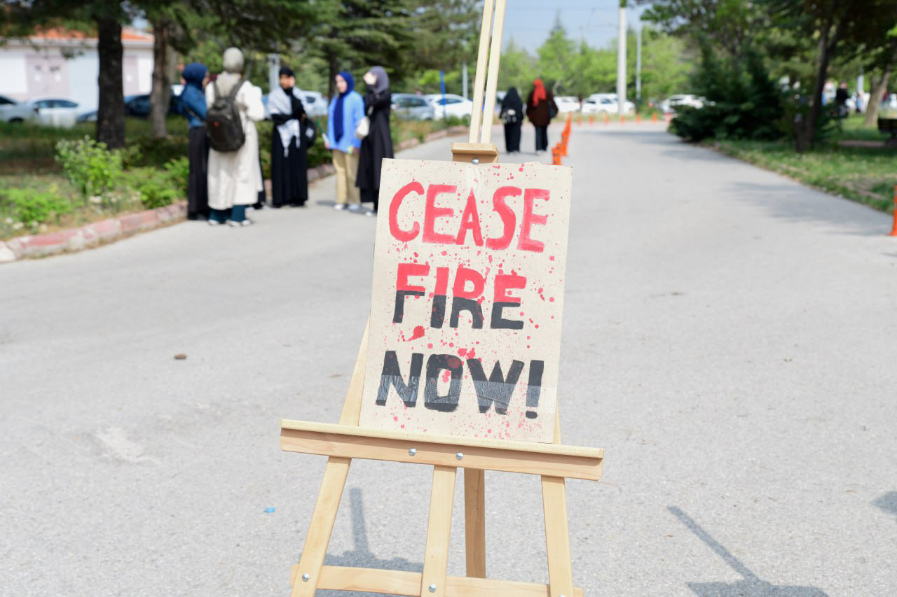 Türkiye’de ise üniversitemiz ve diğer birçok üniversite basın açıklamalarıyla soykırımı lanetliyor. Bizler başta Columbia Üniversitesi olmak üzere Amerika’nın birçok üniversitesine yayılmış protestoları ve direnişçi tüm gençleri Konya’dan, Konya Teknik Üniversitesi’nden selamlıyoruz.