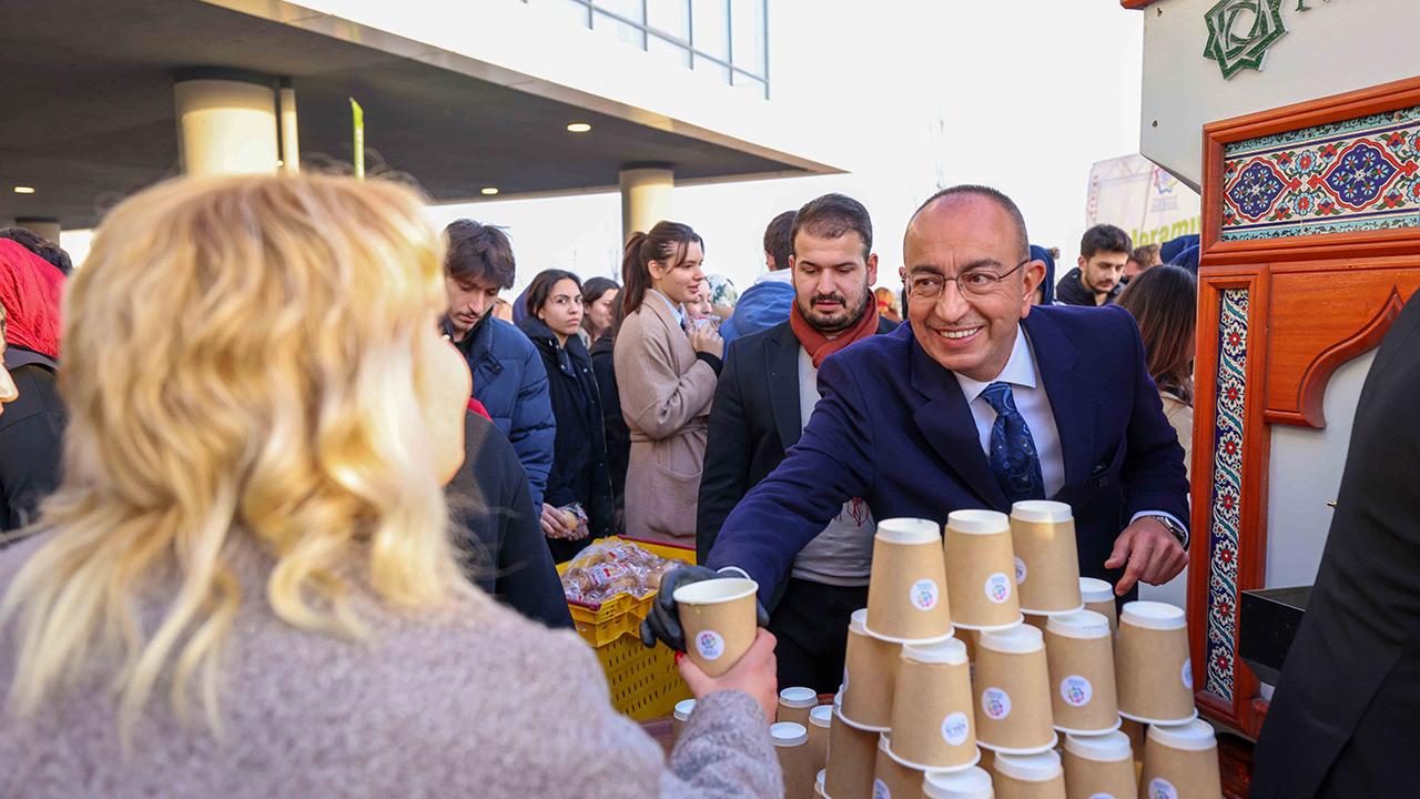 Meram Belediyesi ve Meram Gençlik Meclisi, final sınavı heyecanı yaşayan Necmettin Erbakan Üniversitesi öğrencileri için anlamlı bir etkinlik gerçekleştirdi. Etkinlik çerçevesinde Meram Belediye Başkanı Mustafa Kavuş ve Necmettin Erbakan Üniversitesi Rektörü Prof. Dr. Cem Zorlu sınav maratonunun en yoğun günlerinde öğrencilere çorba ikramında bulundu.