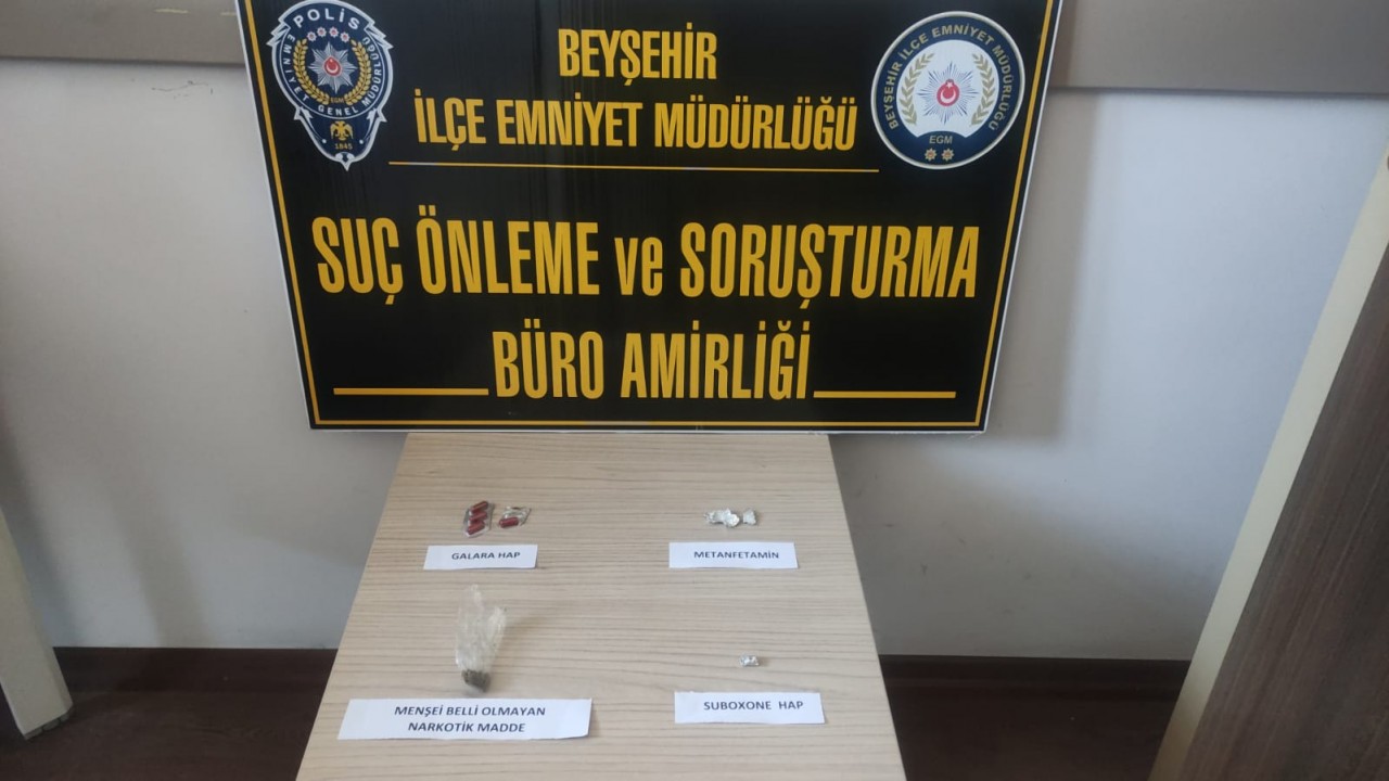 Beyşehir'de üzerinde uyuşturucu ele geçirilen şüpheli gözaltına alındı.