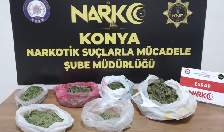 Konya'da düzenlenen uyuşturucu operasyonunda 500 gram sentetik uyuşturucu ve 1145 gram esrar ele geçirildi.