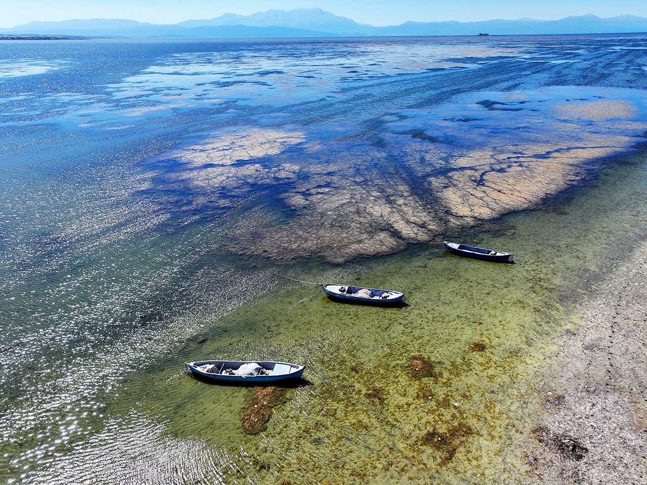DSİ'nin verilerine göre, Türkiye'nin en büyük tatlı su kaynağı Beyşehir Gölü'nde geçen yılın aynı dönemine göre yüzde 8 hacimsel azalma oluşarak, doluluk yüzde 55'e geriledi. Su seviyesi düşen gölün yüzeyini su bitkileri kapladı.