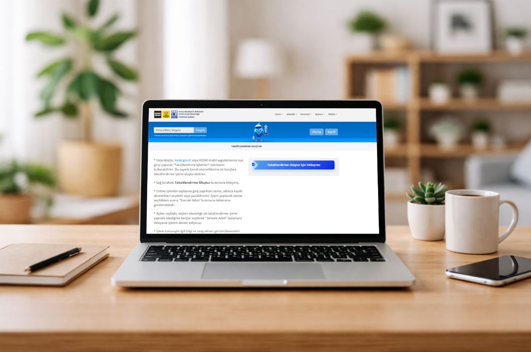 Geliştirilen online taksitlendirme sistemi sayesinde aboneler, aboneliklerine ait borçlarını internet üzerinden kolayca taksitlendirebiliyor. Uygulama ile birlikte borç taksitlendirme işlemleri şubeye gitmeye gerek kalmadan, kısa sürede ve güvenli biçimde tamamlanabiliyor. Türkiye'de bir ilk olma özelliği taşıyan sistem, hem işlem süresini kısaltıyor hem de abonelere ödeme planlarını esnek şekilde düzenleme imkânı sağlıyor.Online taksitlendirme işlemi, KOSKİ’nin resmi internet sitesi veya Mobil KOSKİ uygulaması üzerinden üyelik girişi yapılarak başlatılıyor. Ana sayfada yer alan E-Taksit seçeneği üzerinden Online İşlemler bölümüne geçiş yapılıyor. Bu aşamada adrese kayıtlı abonelik seçilerek işlem adımlarına devam ediliyor.
