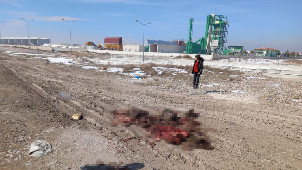Konya’nın Meram ilçesi Çomaklı Mahallesindeki boş arazide parçalanmış yaban domuzları bulundu.
