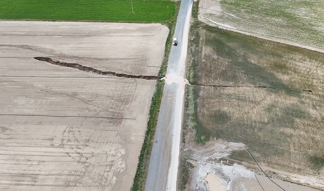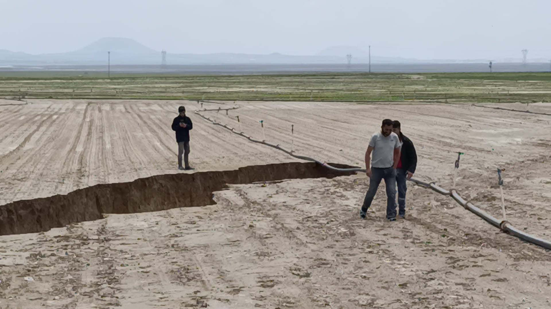 Tarla sahibi Nazım Karagöz, tarlasında daha önce çatlaklıkların olduğunu belirterek, "Tilkili Yaylasında 10 dekar buğday tarlamız ve 27 dekar pancar tarlamız var. Her iki tarlanın ortasından da asfalt yol geçiyor. Arazimizde çatlaklıklar vardı. Kuraklık nedeniyle olduğunu düşündüğümüzden önemsemedik.