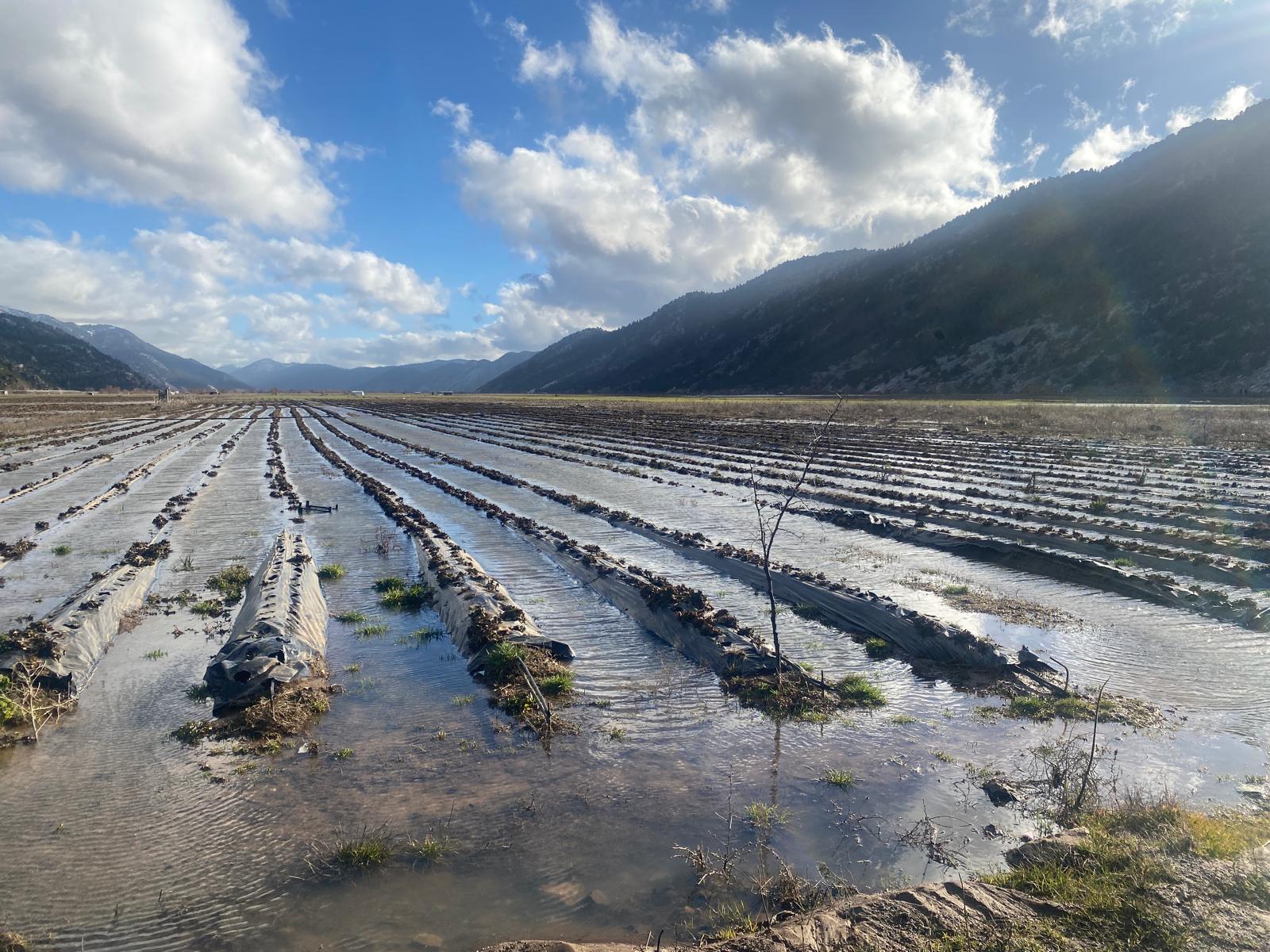 Aralıksız yağan yağmur dağlardaki karı da eritti su kaynakları patladı. Yıllardır akmayan derelerin bile taştığı Derebucak’ta Gembos Ovası su altında kaldı. Taşkınlar nedeniyle arpa, buğday ve çilek ekili alanlar hasar gördü.