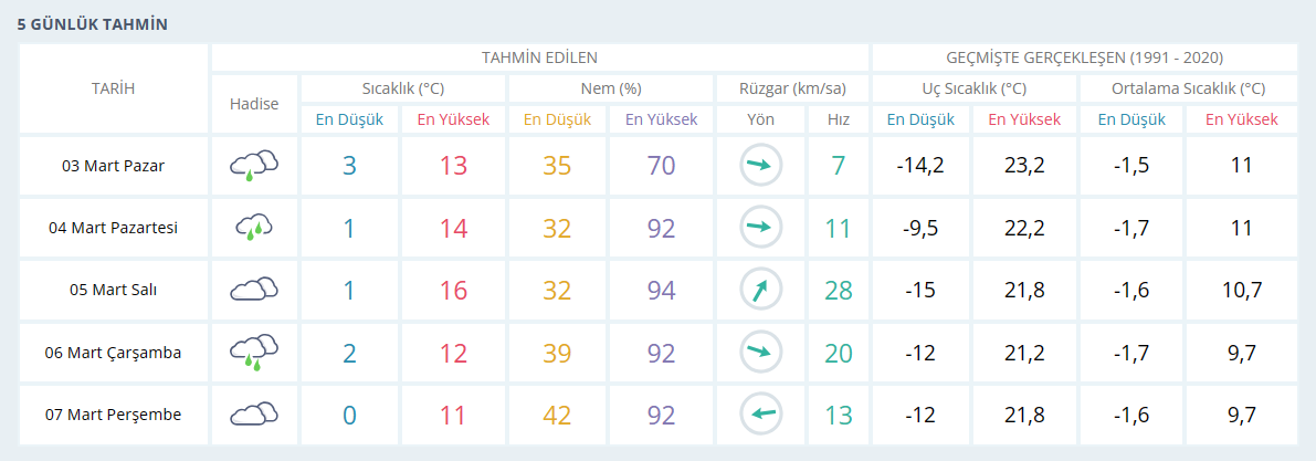 Meteoroloji Genel Müdürlüğü'nden alınan bilgilere göre Konya için 5 günlük hava durumu tahmini şöyle: