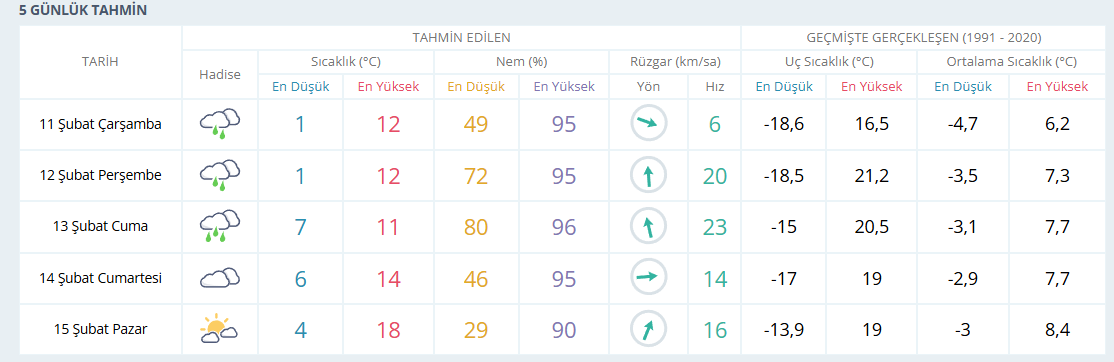 Konya’da 11 Şubat Çarşamba, 12 Şubat Perşembe vgünü kent genelinde yağmurlu bir hava beklenirken 13 Şubat Cuma günü kuvvetli yağış bekleniyor.