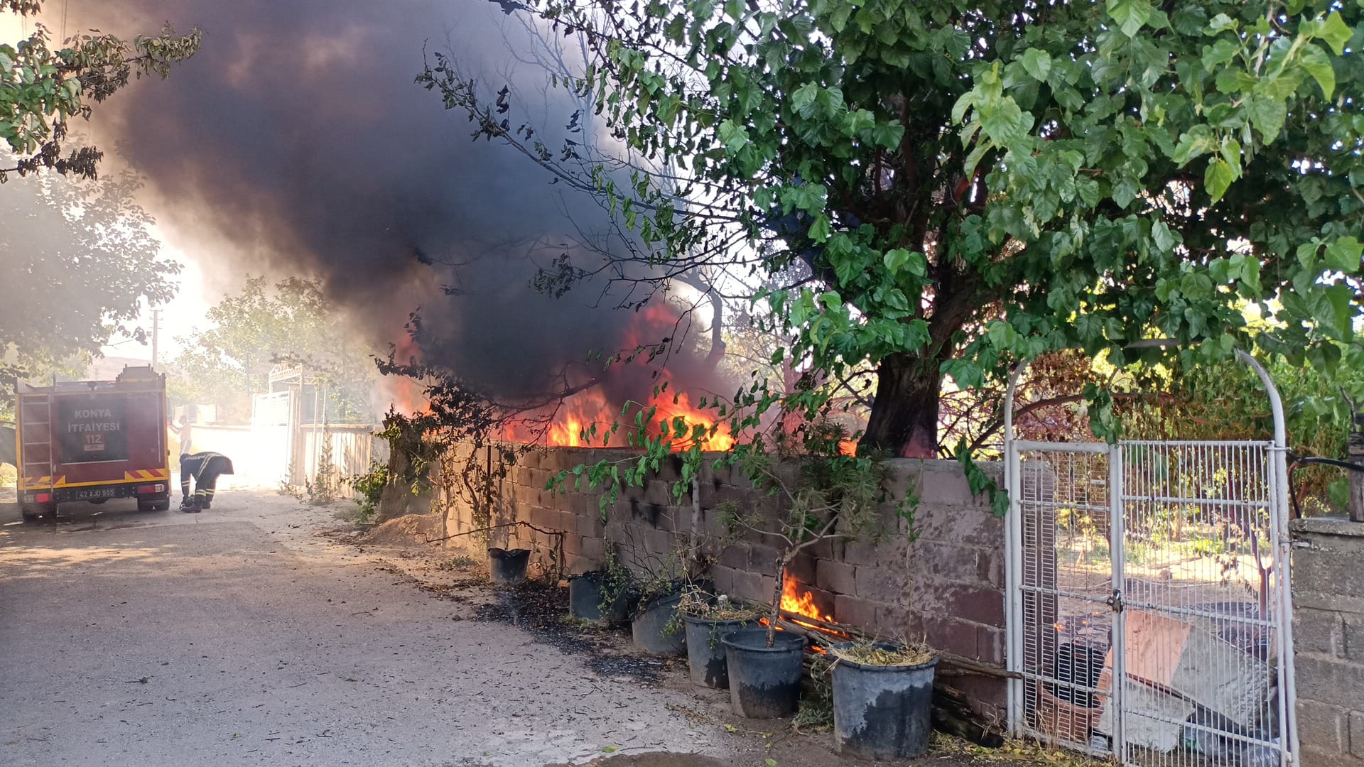 Konya'nın Meram ilçesi Lalebahçe Mahallesi Battalgazi Sokak'ta bir bahçede yangın çıktı. Yangını devriye görevinde olan Lalebahçe Karakolu ekipleri fark ederek durumu hemen itfaiyeye bildirdi.
