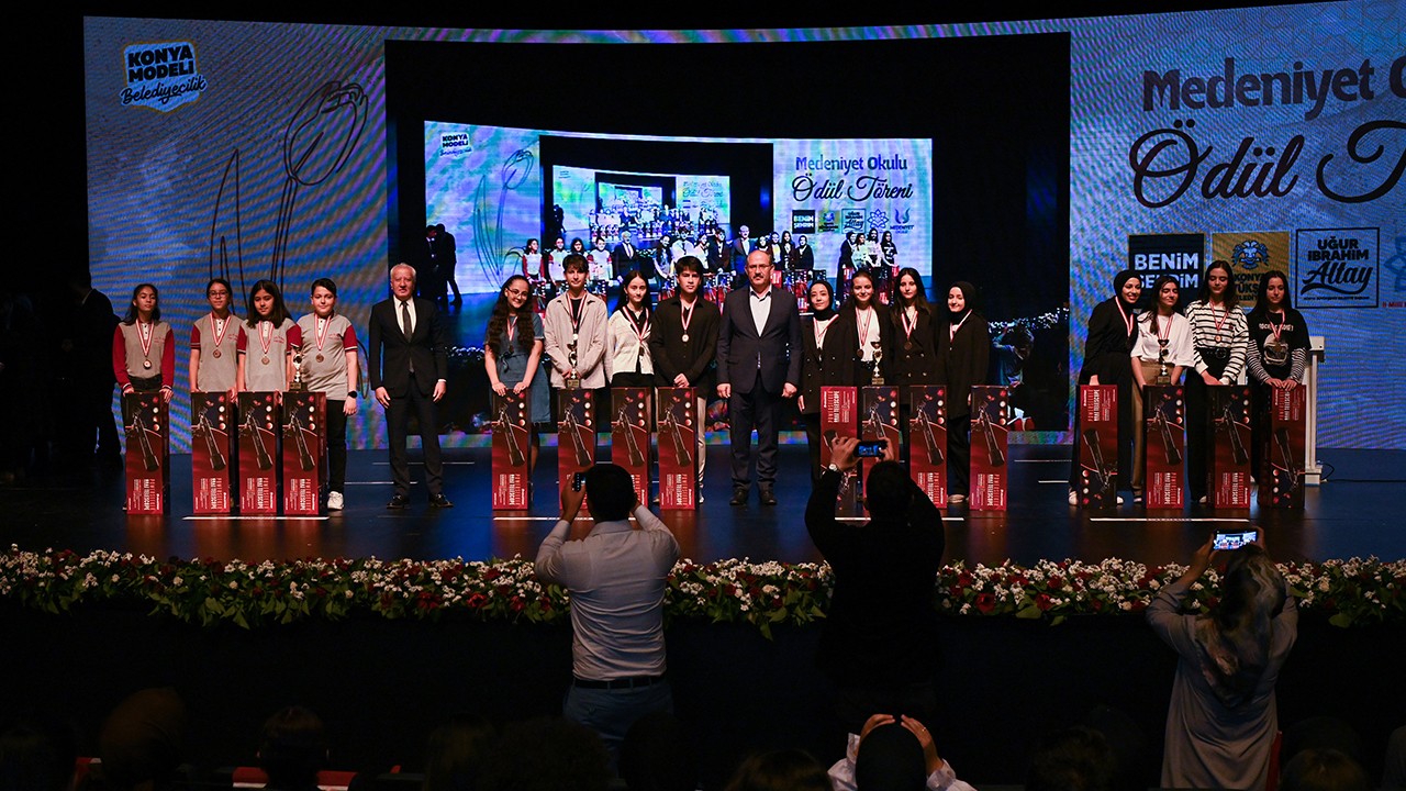 Konya Büyükşehir Belediyesi ve İl Milli Eğitim Müdürlüğü tarafından Medeniyet Okulu Projesi kapsamında öğrencilere yönelik düzenlenen yarışmalarda dereceye giren öğrencilere hediyeleri takdim edildi.