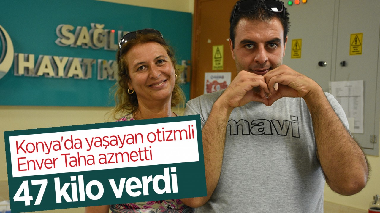 Konya'da annesi Fatma Tarhan ile yaşayan 28 yaşındaki otizmli Enver Taha Tarhan, Sağlıklı Hayat Merkezi'ndeki uzman diyetisyen kontrolünde 47 kilo verdi. Enver Taha'nın eğitimi için çok çabaladığını anlatan anne Fatma Tarhan, 153 kilo olması nedeniyle kan basıncı yükselen ve çeşitli sağlık sorunları yaşayan Enver Taha'nın risk grubunda olduğunu öğrenmesiyle yaklaşık 1,5 yıl önce diyetisyen arayışına girdiğini belirtti.