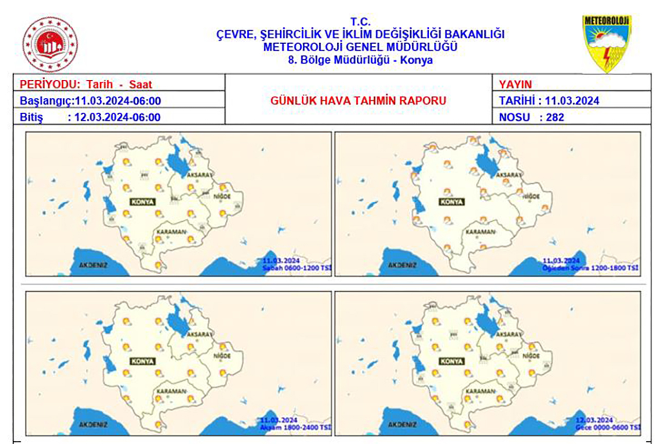 Hava sıcaklığının en yüksek 15 derece olması beklenen Konya'da havanın bugün (11 Mart Pazartesi) parçalı ve az bulutlu olacağı tahmin ediliyor.
