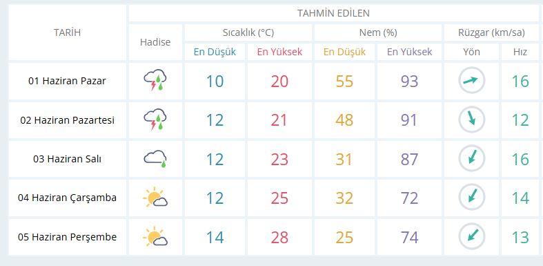 KONYA 5 GÜNLÜK HAVA DURUMU