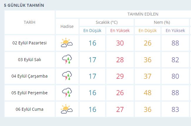 KONYA'DA 5 GÜNLÜK HAVA TAHMİN RAPORU
