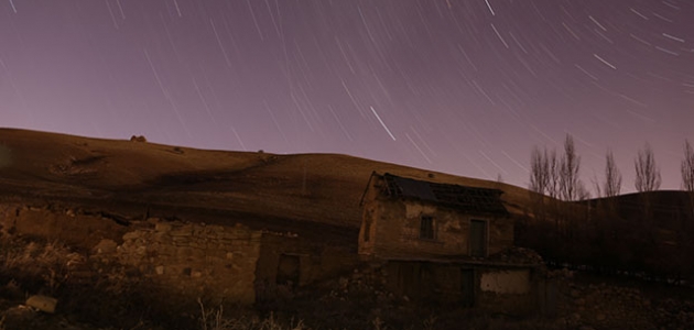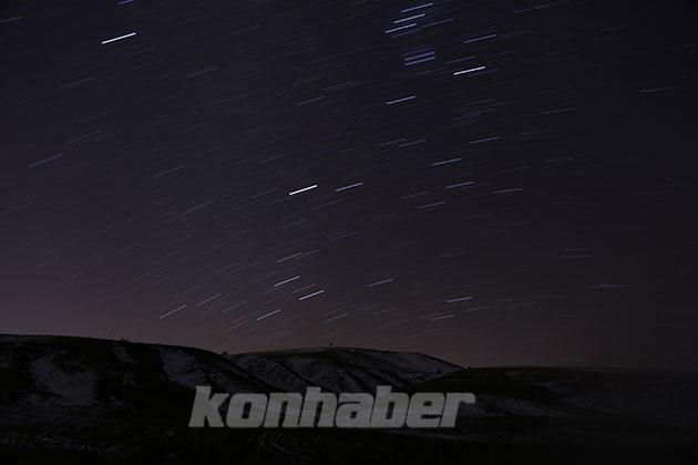 Konya'nın Ereğli ve Halkapınar ilçelerini bağlayan kara yolu üzerindeki terkedilmiş ahşap barınak, yıldızların altında güzel görüntüler oluşturdu.