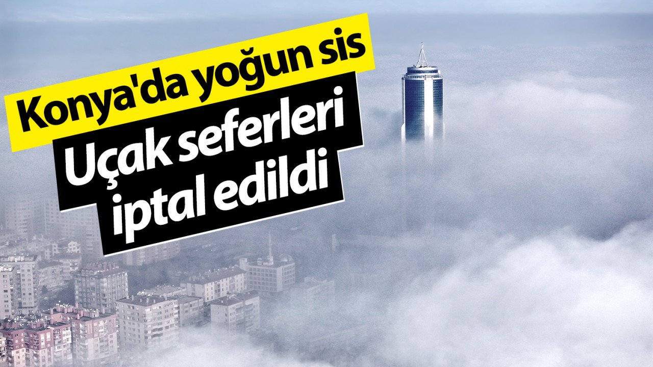 Konya'da etkili olan yoğun sis hayatı olumsuz etkilerken, uçak seferleri de iptal edildi.
