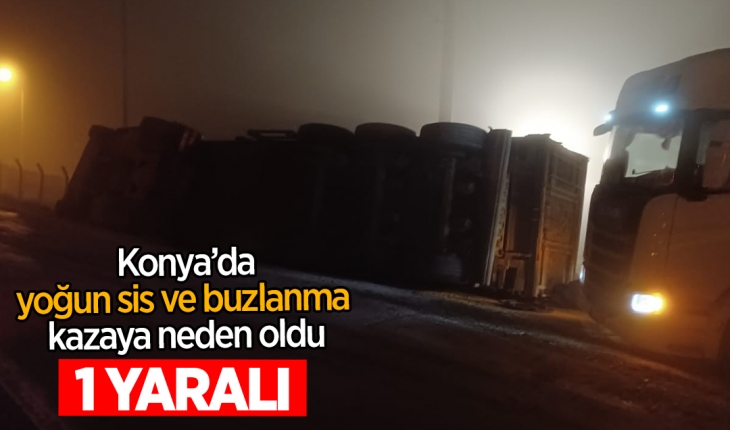 Bayram Çınar idaresindeki 42 AFA 548 plakalı tır, gizli buzlanma ve sisin etkili olduğu Merkez Ölmez Mahallesi çevre yolunda devrildi.
