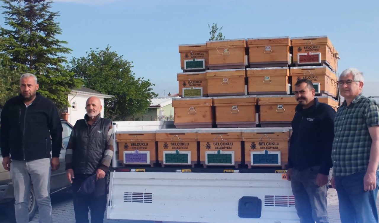 Selçuklu ilçesindeki kırsal mahallelerde kalkınmanın sağlanması ve hayvansal üretimin artırılması amacıyla hayata geçirilen "%50 Hibeli Arılı Kovan Desteği" projesi bu yıl üçüncü kez üreticilerle buluştu. Proje kapsamında başvuru yapan üreticilere arılı kovanları teslim edildi.