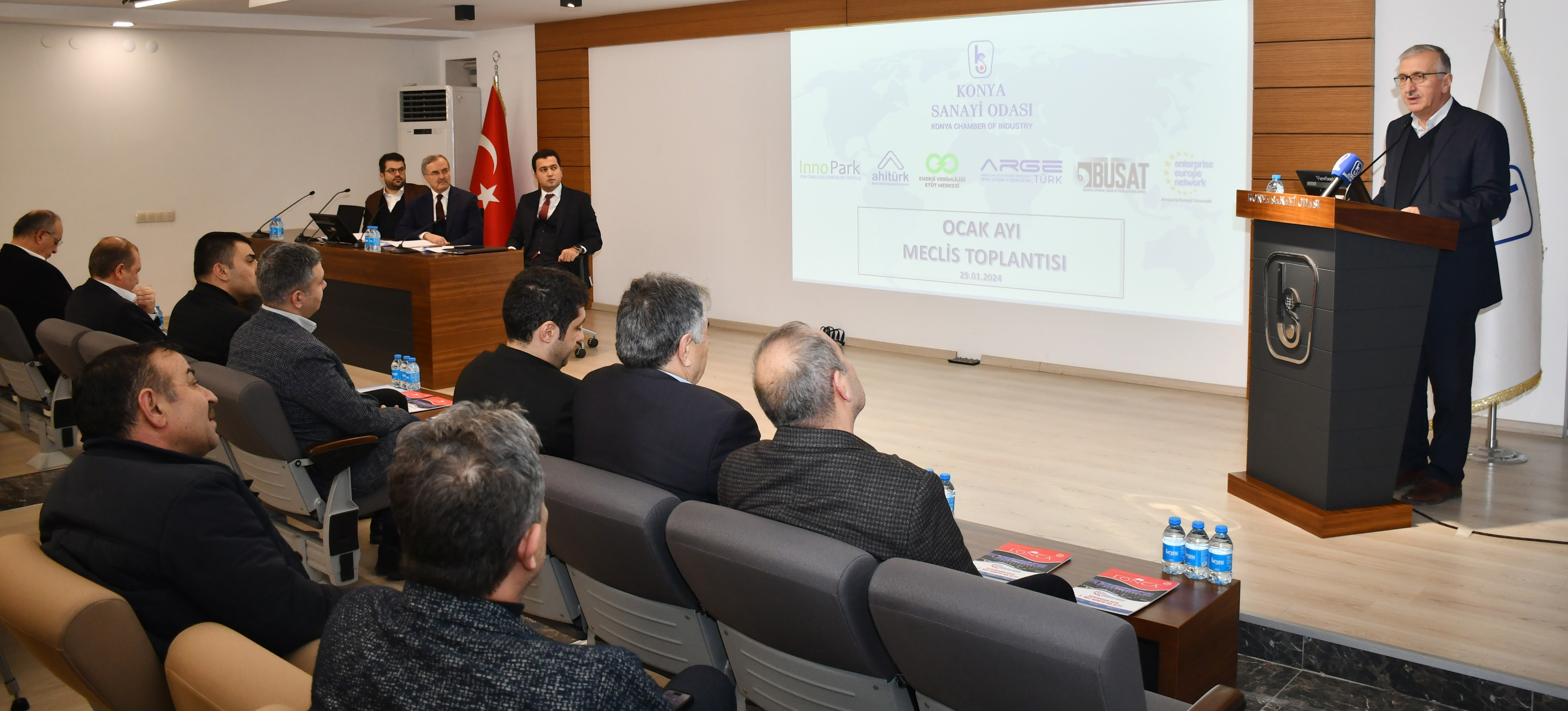 Konya Sanayi Odası Meclis Başkanı Memiş Kütükcü’nün başkanlığında gerçekleştirilen Ocak ayı meclis toplantısında konuşan Konya Sanayi Odası Başkanı Mustafa Büyükeğen, meclis üyelerine KSO’nun projeleri, 2024 yılında yapacağı faaliyetler, yurt içi ve yurt dışı fuar organizasyonları, ikili iş görüşmeleri ve sektörlere yönelik çalışmaları ile ilgili bilgiler verdi.