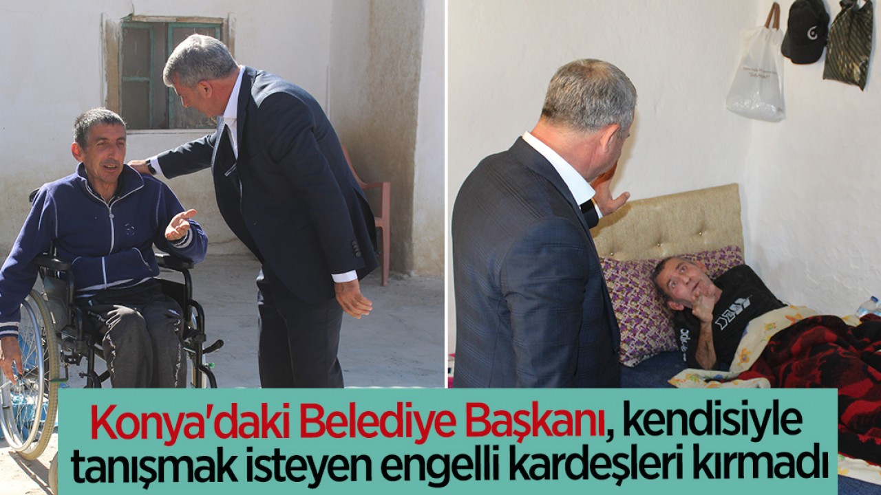 Yunak Belediye Başkanı Subhan Günaltay, bedensel engelli Ali Aksoy (46) ve Muhammet Aksoy'u (37), ziyaret etti. Kardeşlerin taleplerini dinleyen Günaltay, "Engelli vatandaşlarımızın yanında olmak ve onların hayatlarını kolaylaştırmak bizim en önemli görevlerimizden biridir. Bu taleplerin en kısa sürede karşılanması için gerekli adımları atacağız." dedi.