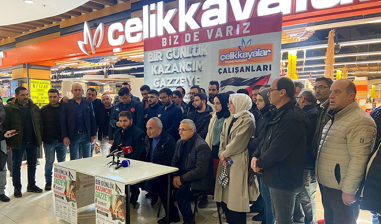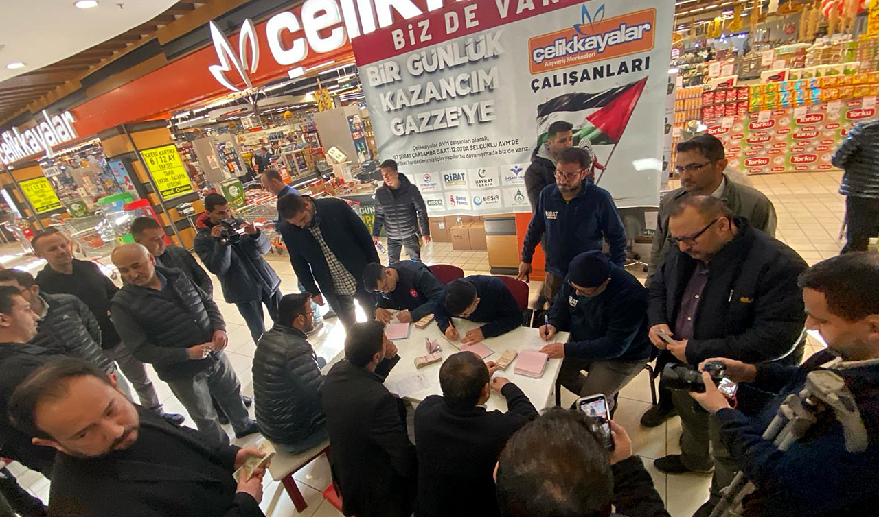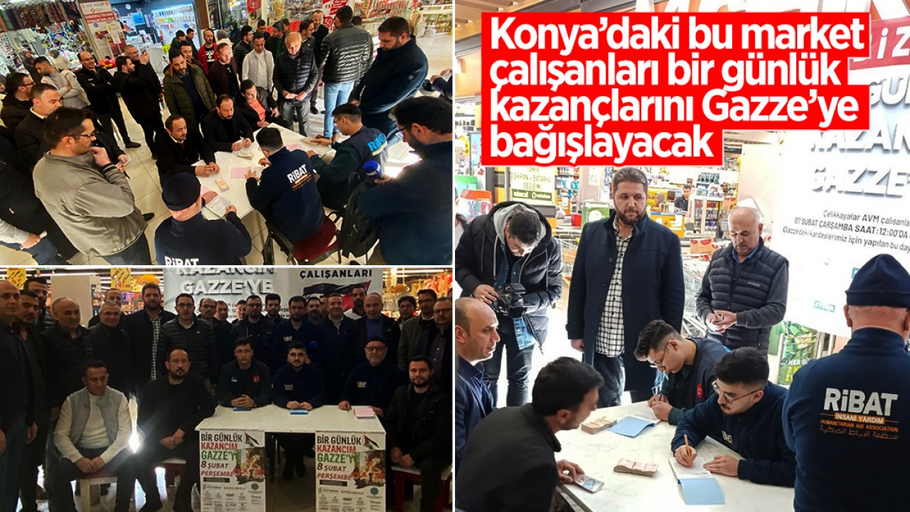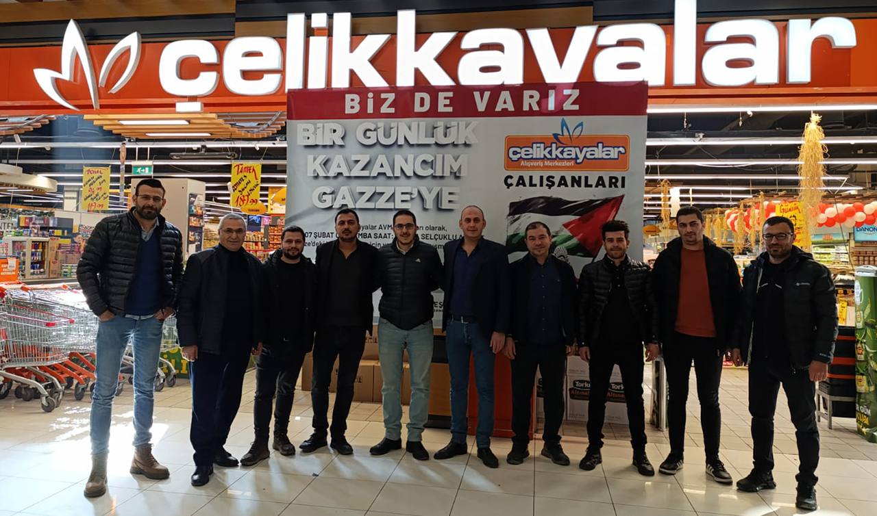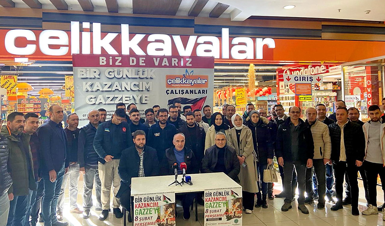 Konya Çelikkayalar Market çalışanları bir günlük kazançlarını Gazze’ye bağışlayacak. “Bir günlük kazancım Gazze’ye” kampanyası altında bir araya gelen market çalışanları, “Biz de varız” dedi.