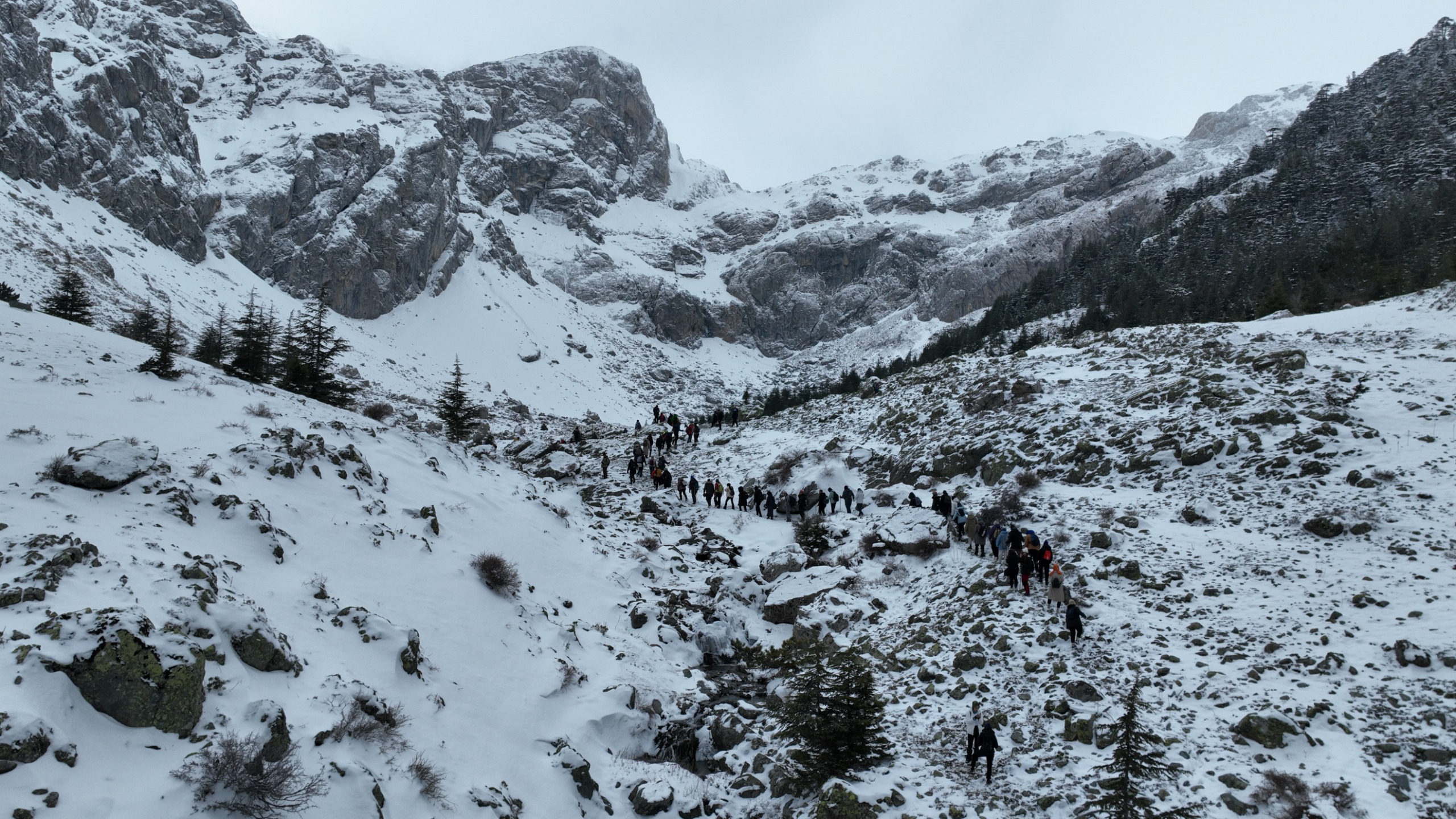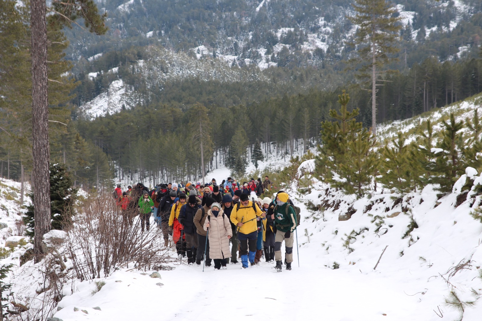 'Türkiye'nin önemli oksijen deposu merkezi' olarak gösterilen, Anamas Dağı'nın 2 bin 370 metre rakımında bulunan Muslu Yaylası'na 237 doğasever, 'kar yürüyüşü' gerçekleştirildi.