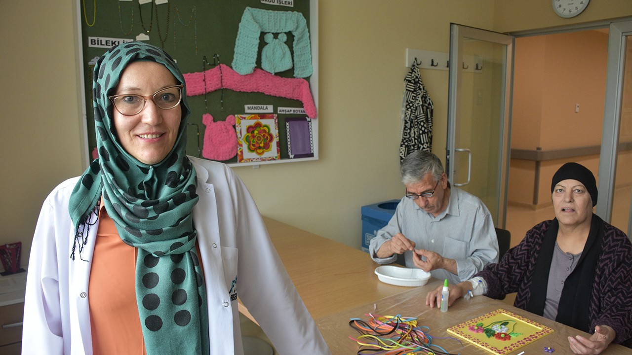 Hastalardan 38 yaşındaki 2 çocuk annesi Fadime Ünal, 13 yaşında lökopeni olarak adlandırılan beyaz kan hücre sayısının azalması tanısı aldığını, tedavilerle sağlığına kavuştuğunu belirterek, "25 yıl sonra beyaz kan hücrelerinin düşmesi nedeniyle yeniden rahatsızlandım. El sanatları bize moral oldu. 4 yaşındaki kızıma atkı ördüm. 13 yaşındaki kızıma da telefon ipi ve kolye yaptım." dedi.