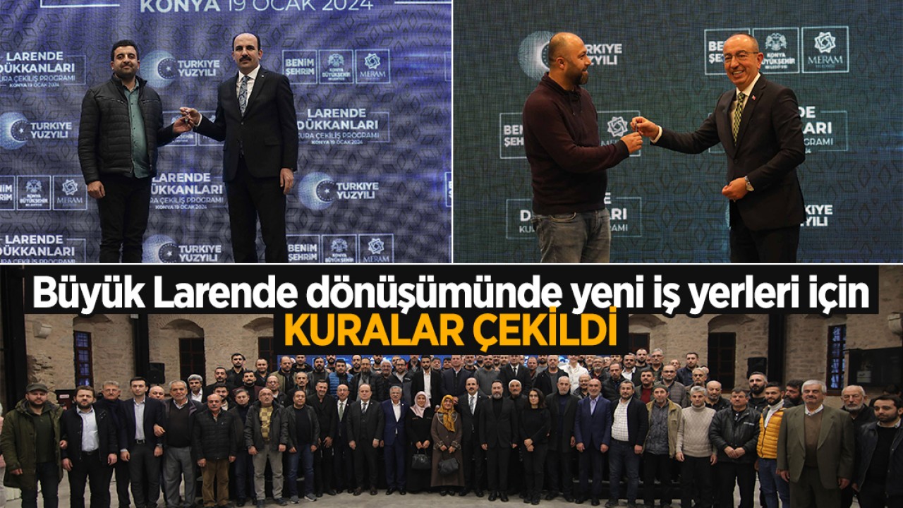 Türkiye’de yürütülen en büyük ihya projelerinden Darü’l-Mülk Projesi kapsamında Konya Büyükşehir Belediyesi ve Meram Belediyesi iş birliğiyle hayata geçirilen “Büyük Larende Dönüşümü”nde, tamamlanan yeni iş yerleri için kuralar çekildi.