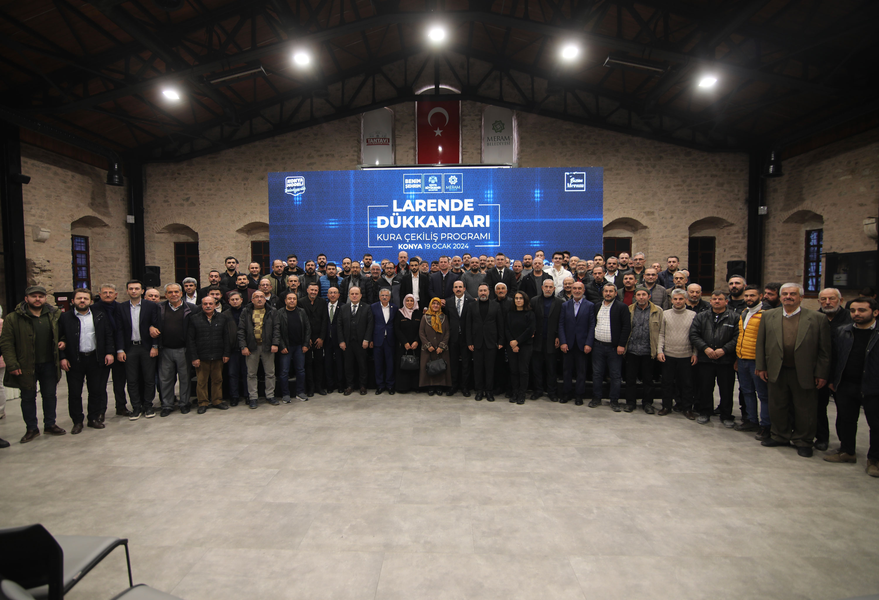 Konya Büyükşehir Belediyesi ve Meram Belediyesi iş birliğiyle hayata geçirilen Büyük Larende Dönüşümü Projesi kapsamında “Larende Dükkanları Kura Çekiliş” programı gerçekleştirildi.